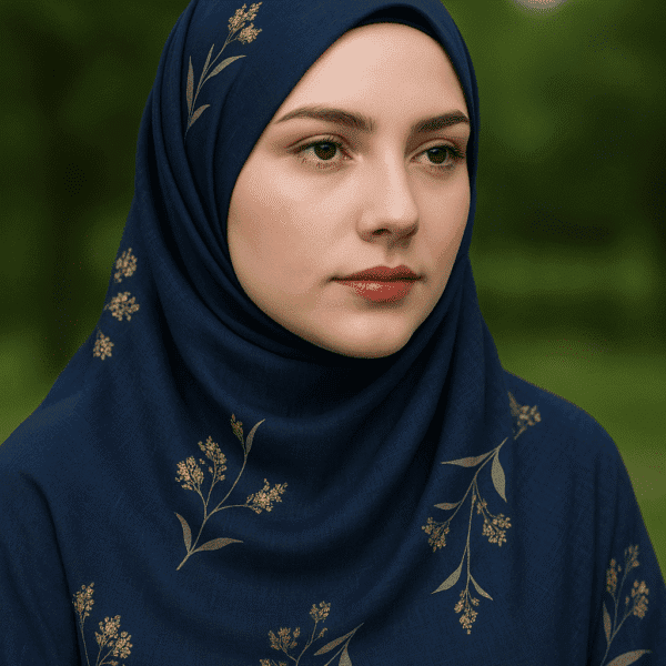 Turkish Foil Print Hijab (Navy Blue)
