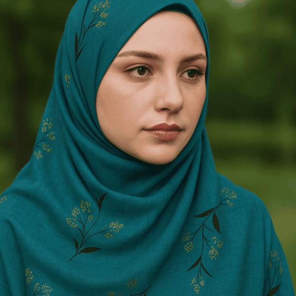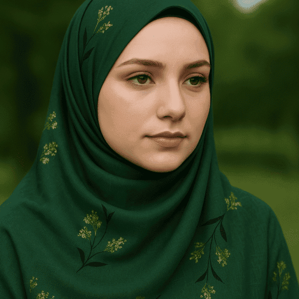 Turkish Foil Print Hijab (Bottle Green)