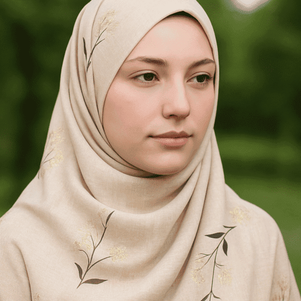Elegant peach-colored hijab with stylish design by Hijab Haven Store.