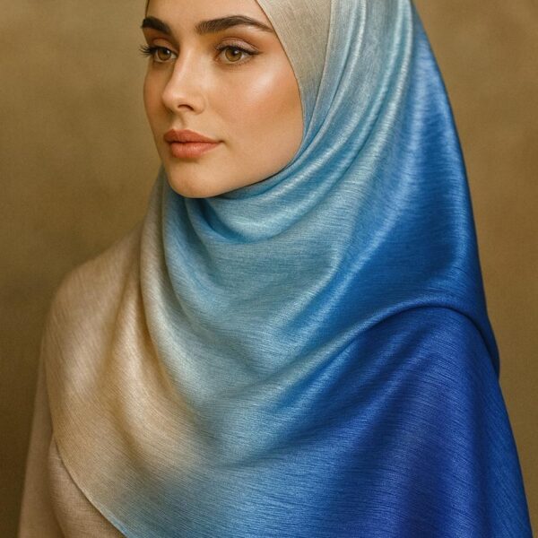 Silk Double Tone Hijab ( Cream & Sapphire Blue )