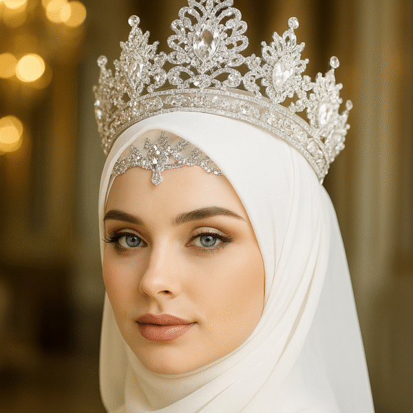 Zircon Royal Crystal Leaf Bridal Hijab Crown