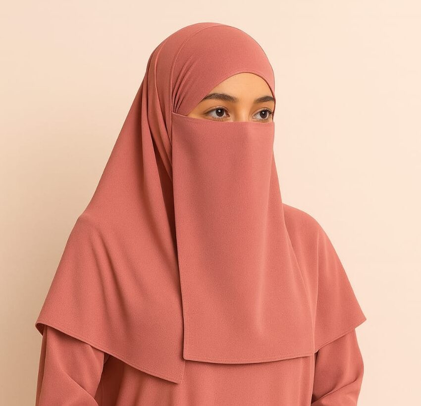 3 Pcs Hijab Naqab Cap Dusty Rose )