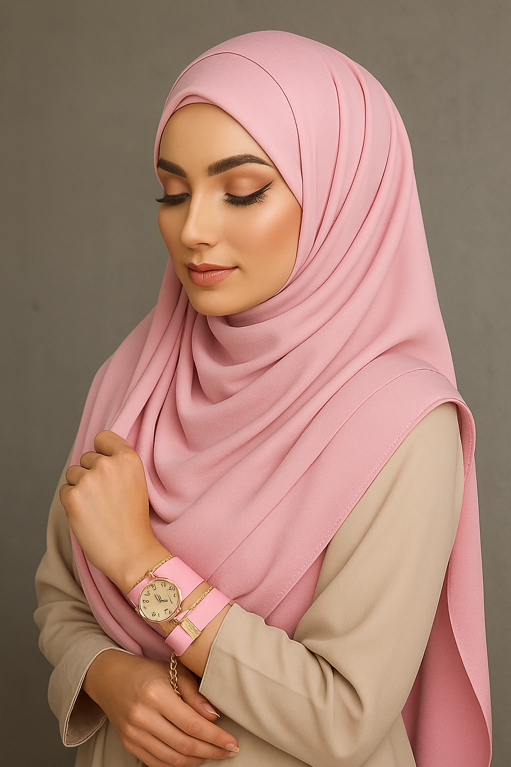 Chiffon Georgette Hijab with Watch & Bracelet(Pink )
