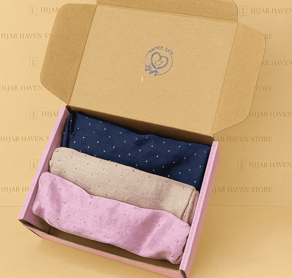Be the first to review “Crinkle Sil Stone Work Trio Hijab Gift Box” Cancel reply