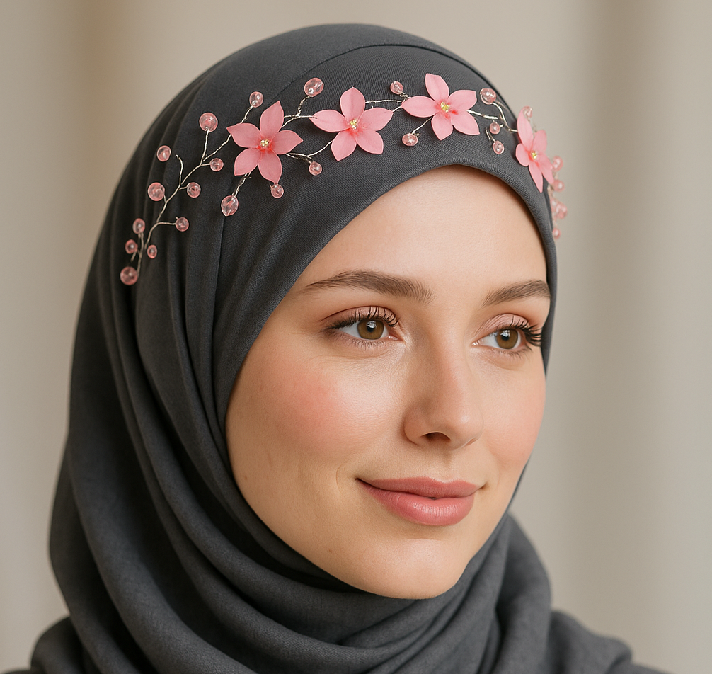 Crystal Blossom Hijab Crown (Pink)