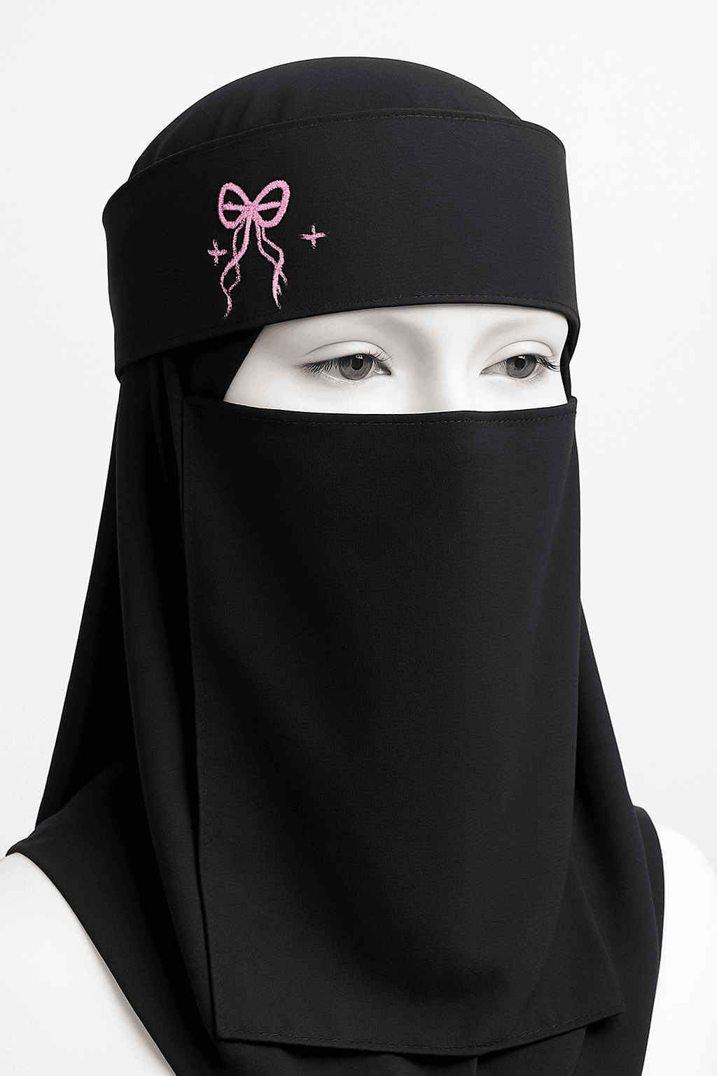 Embriodered Saudi Niqab (Pink Bow )
