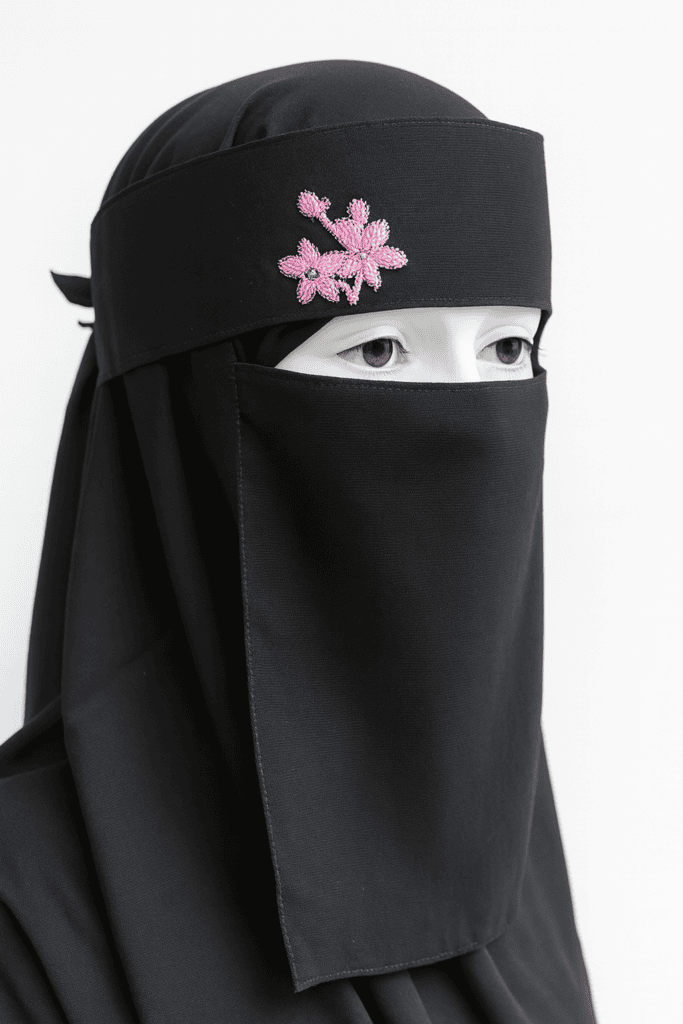 Embriodered Saudi Niqab (Pink Flower Design)