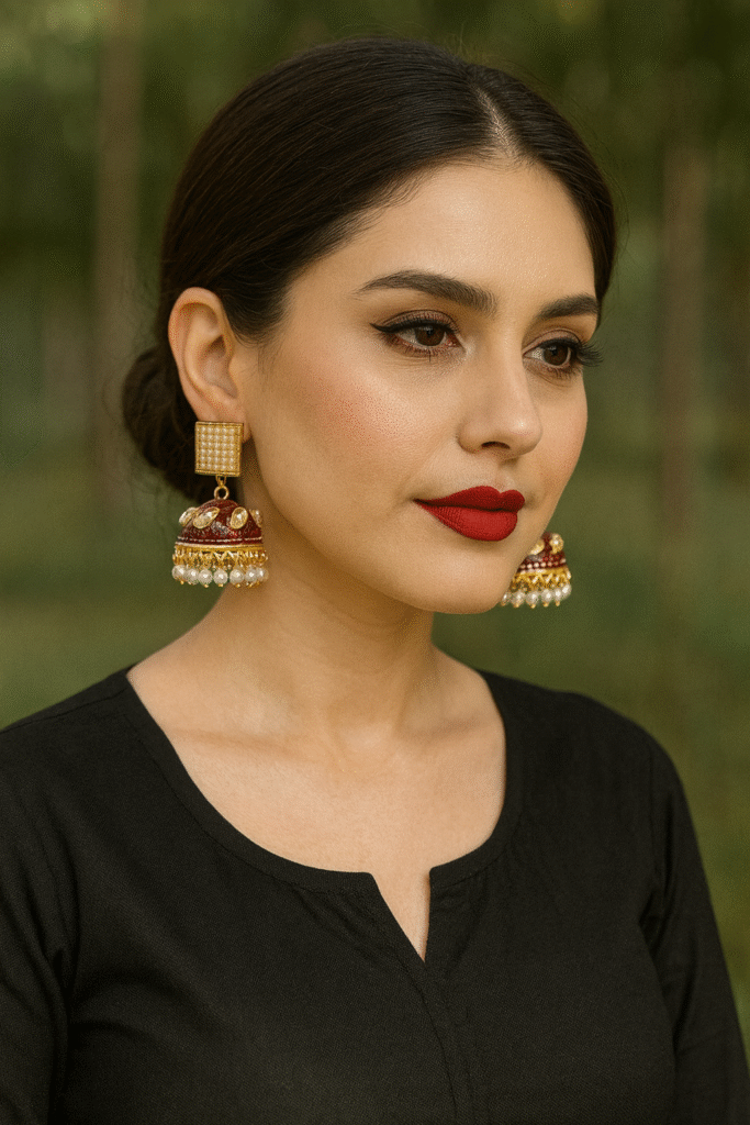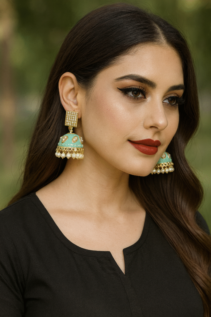 Be the first to review “Kundan Jhumka Earing ( White & Golden )” Cancel reply