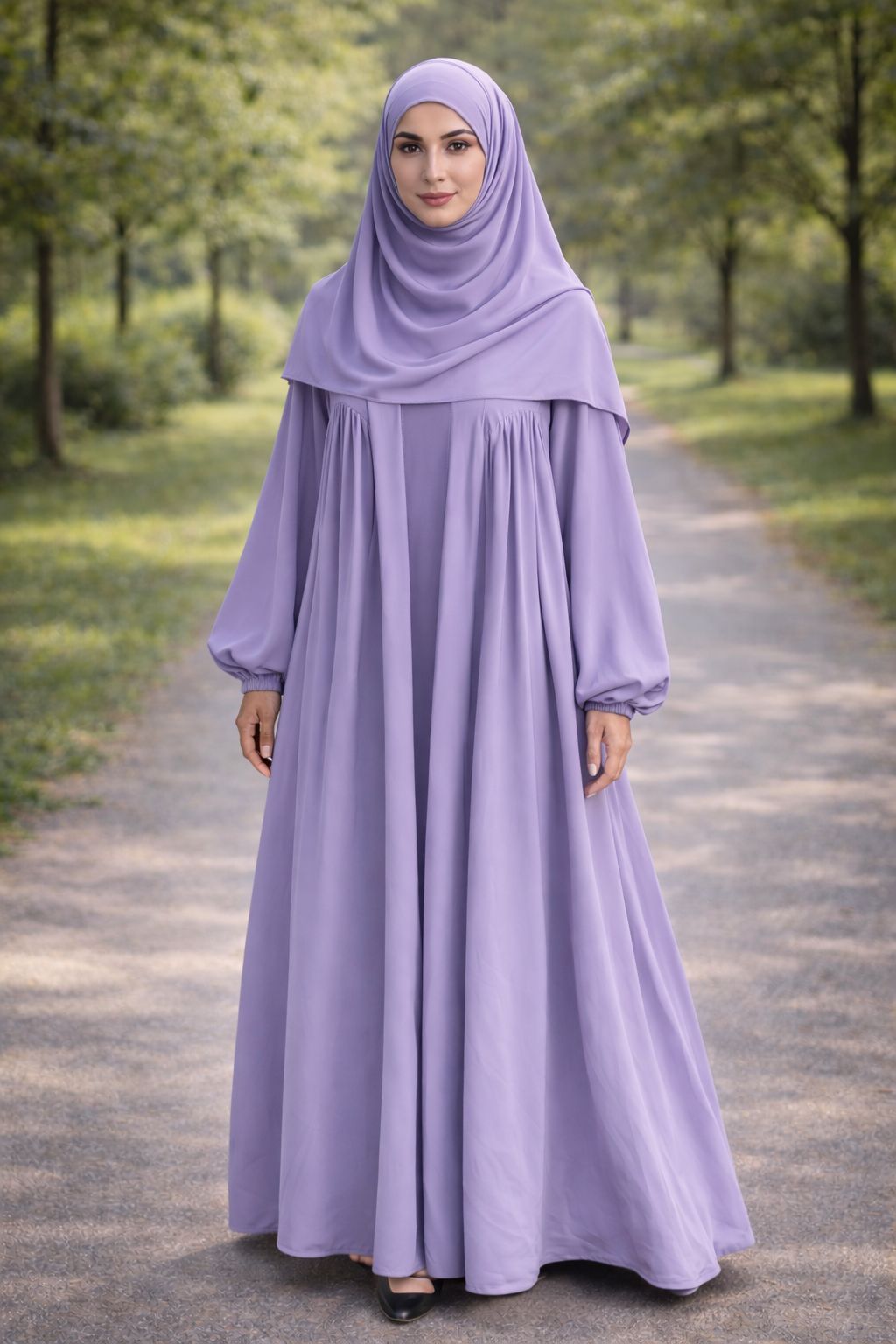 Be the first to review “Layla Gathered Abaya (Lavender )” Cancel reply