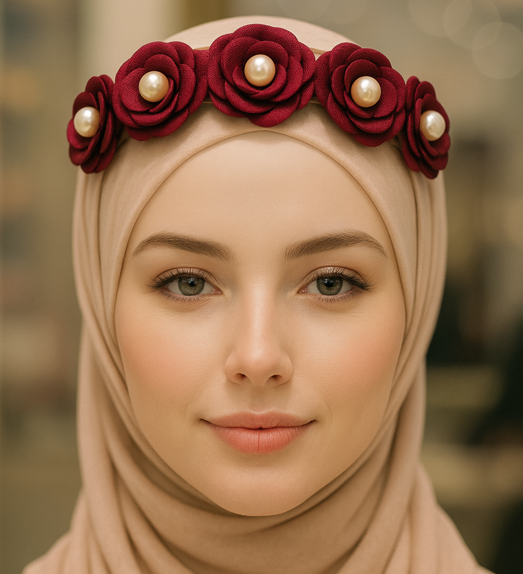 Be the first to review “Pearl Rose Hijab Crown (Maroon velvet)” Cancel reply