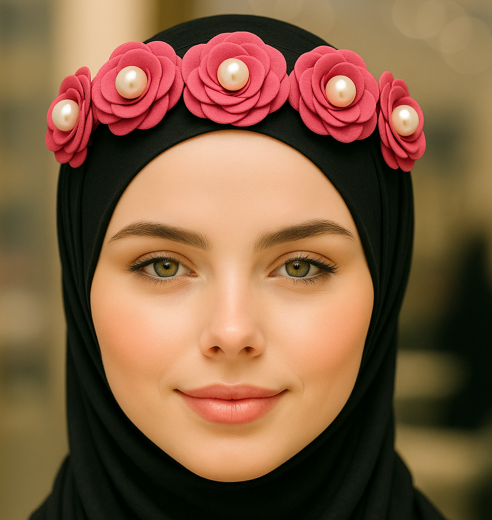 Be the first to review “Pearl Rose Hijab Crown (Pink )”
