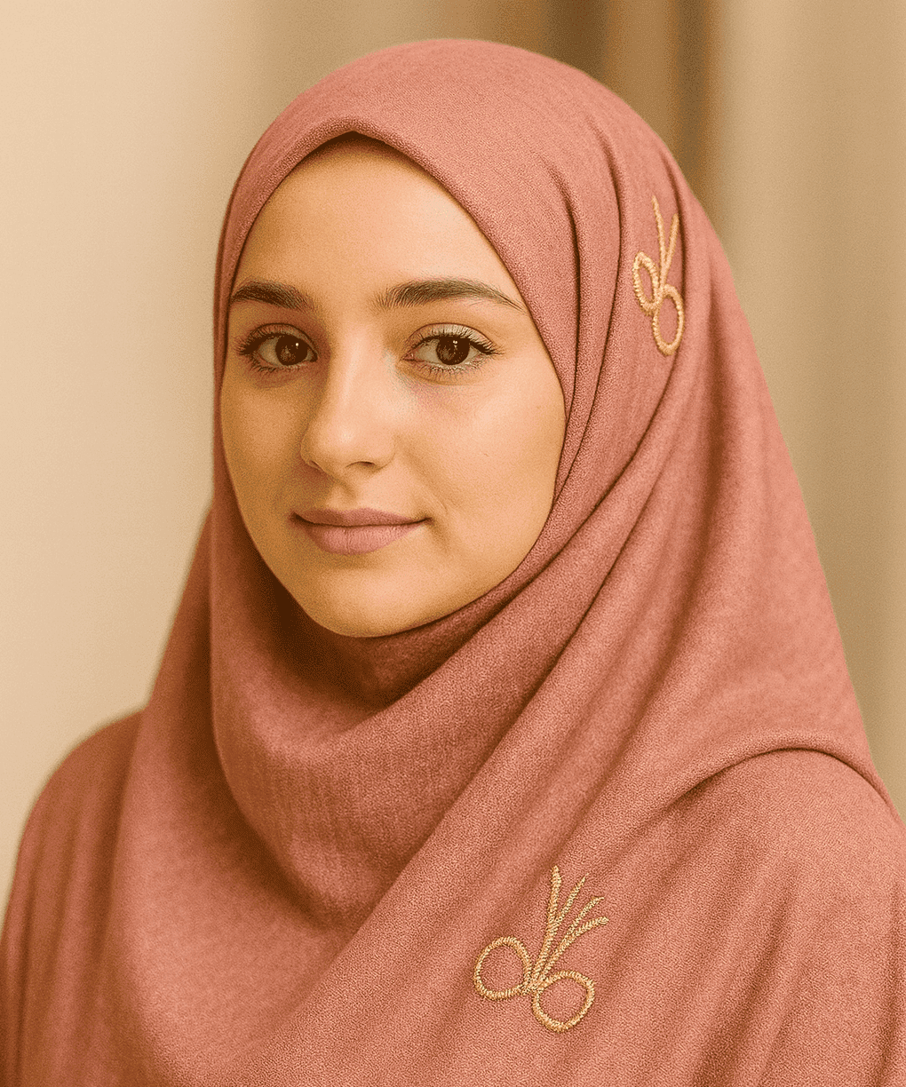 Elegant blue hijab with gold embroidery, perfect for modest fashion and Muslim women's attire.