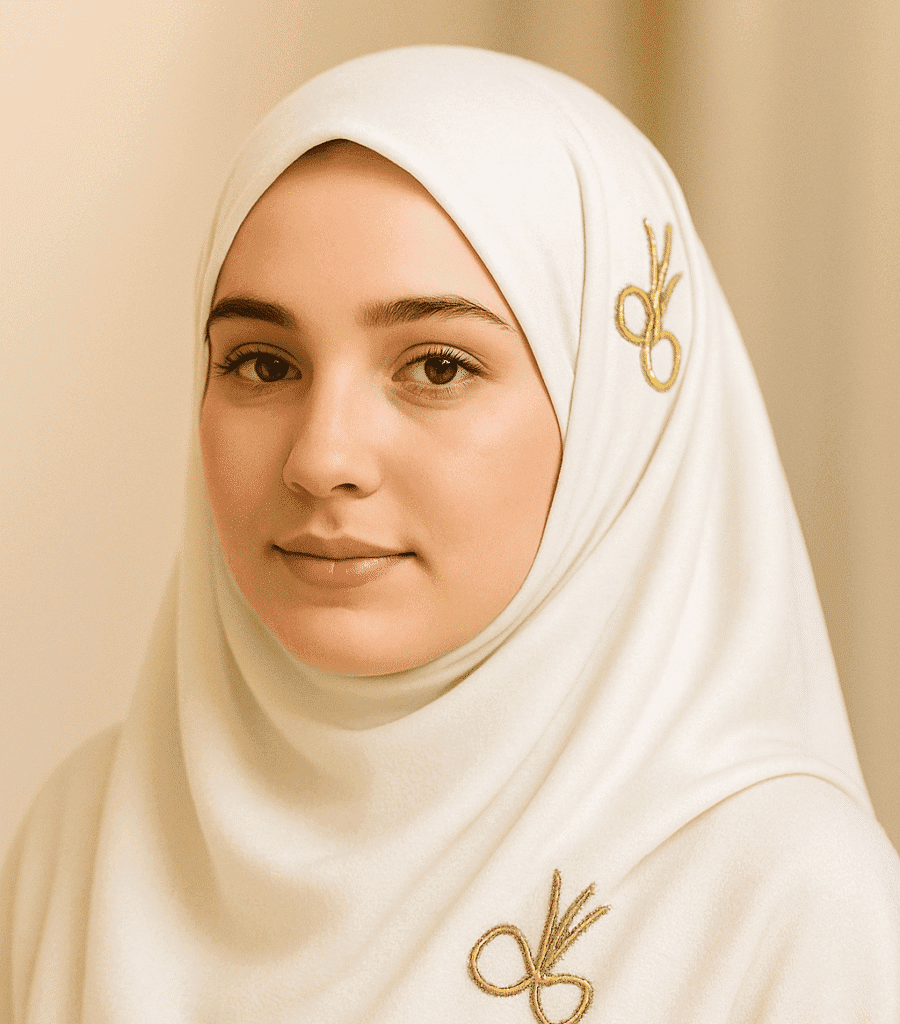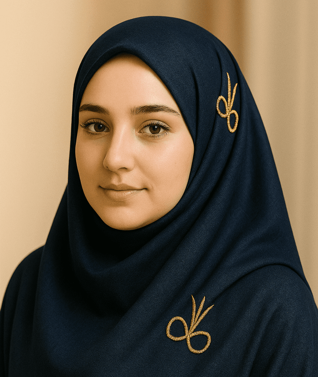 Elegant gray hijab with gold embroidery, perfect for modest fashion and special occasions.