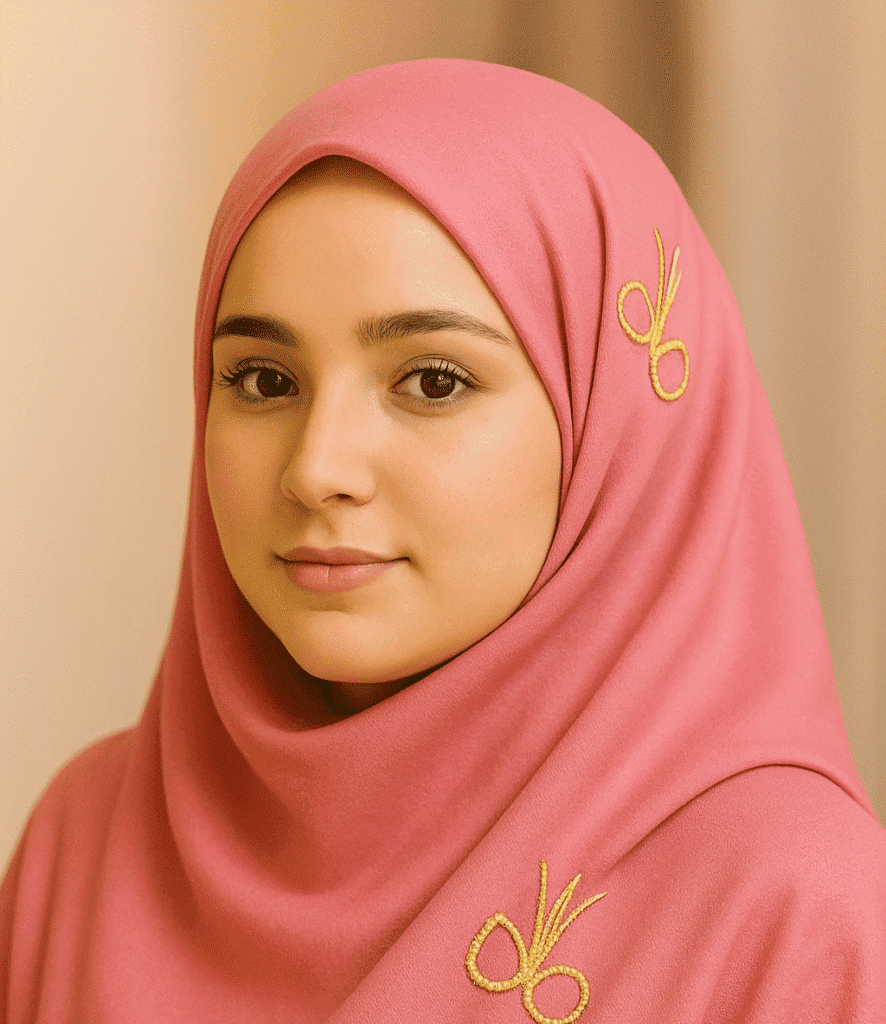 Elegant dark green hijab with gold embroidery, perfect for modest fashion and everyday wear.