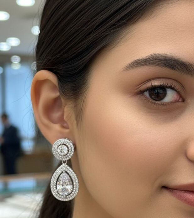 Be the first to review “Royal Tear Drop Crystal Earings (Silver)” Cancel reply