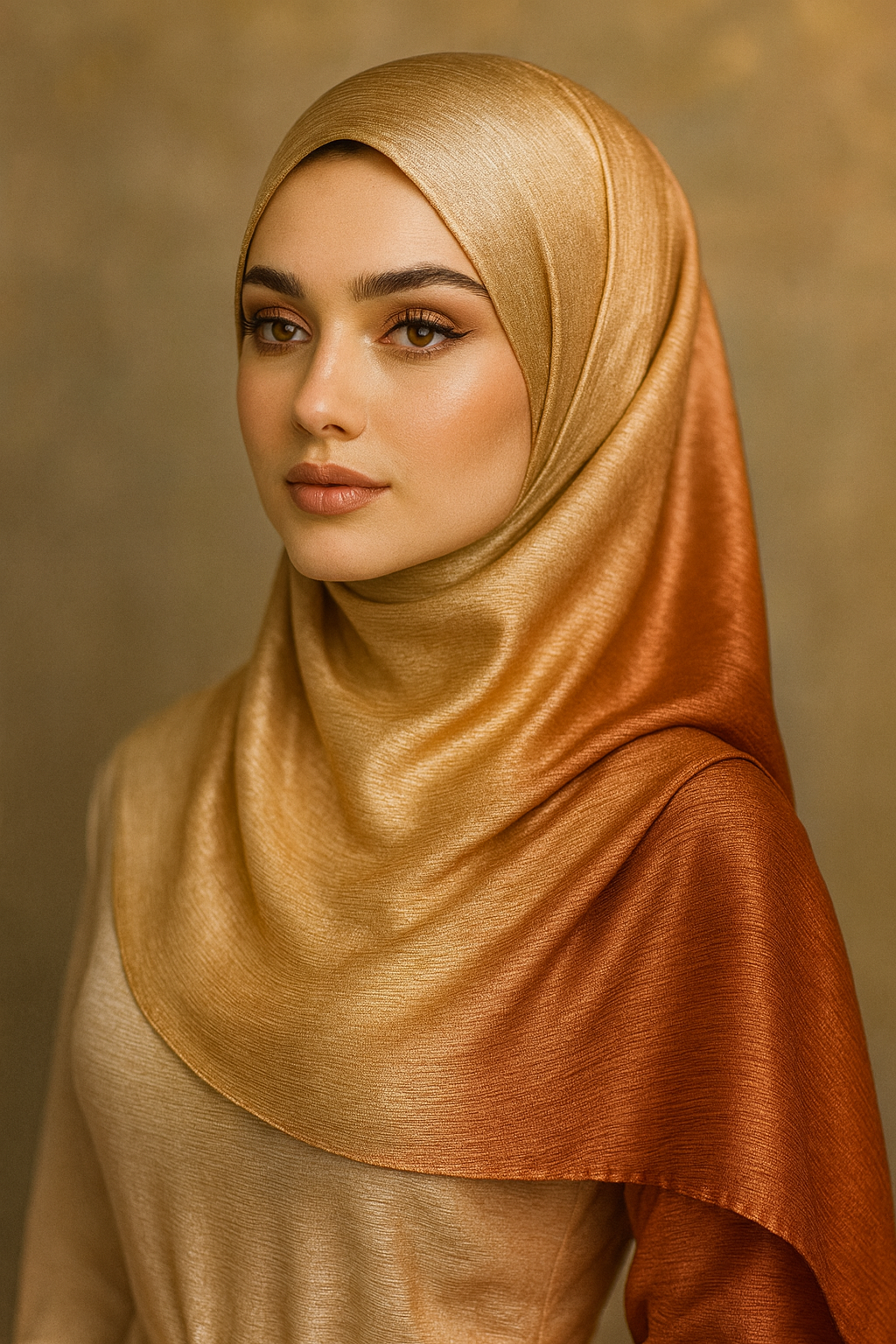 Silk Double Tone Hijab (Cream & Rust )