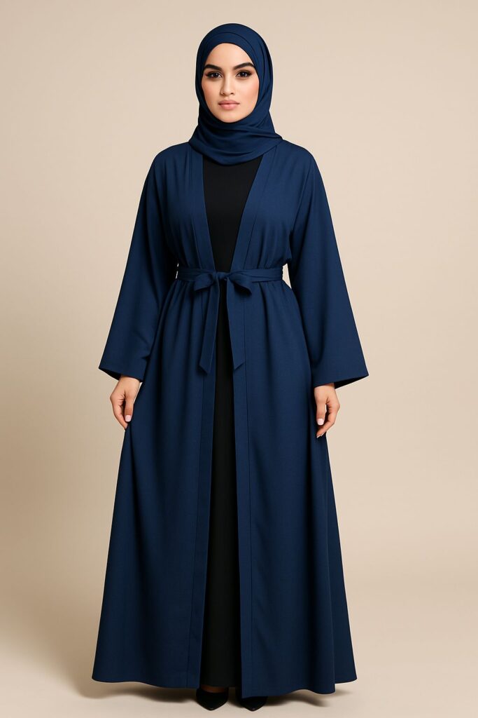 Double Layer Abaya with Belt (Navy Blue Upper & Black Inner)