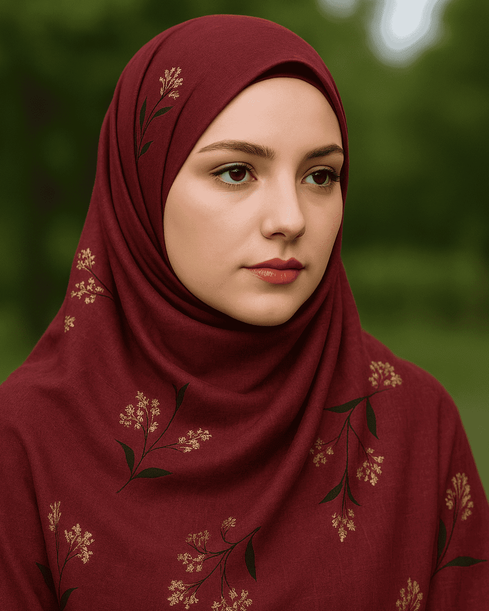 Turkish Foil Print Hijab (Maroon )